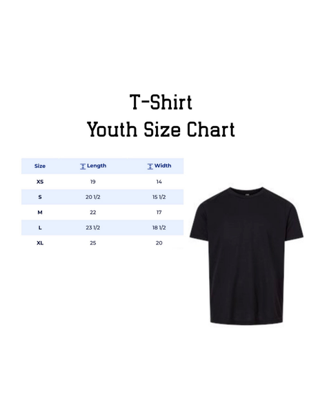 Your team logo on a soft unisex black t-shirt in adult and youth sizes.