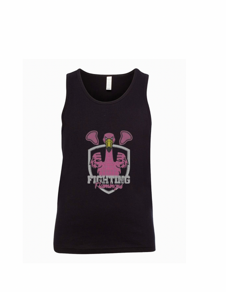 Your blinged team logo on a unisex black tank top in adult and youth sizes.