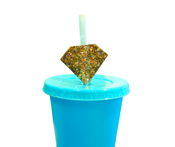 Gold Sparkle Diamond Straw Topper