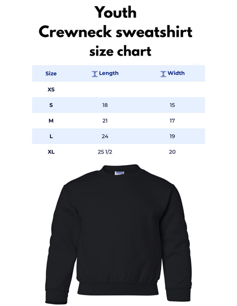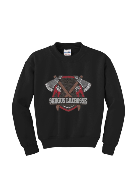 Your blinged team logo on black crewneck sweatshirt in adult and youth sizes.